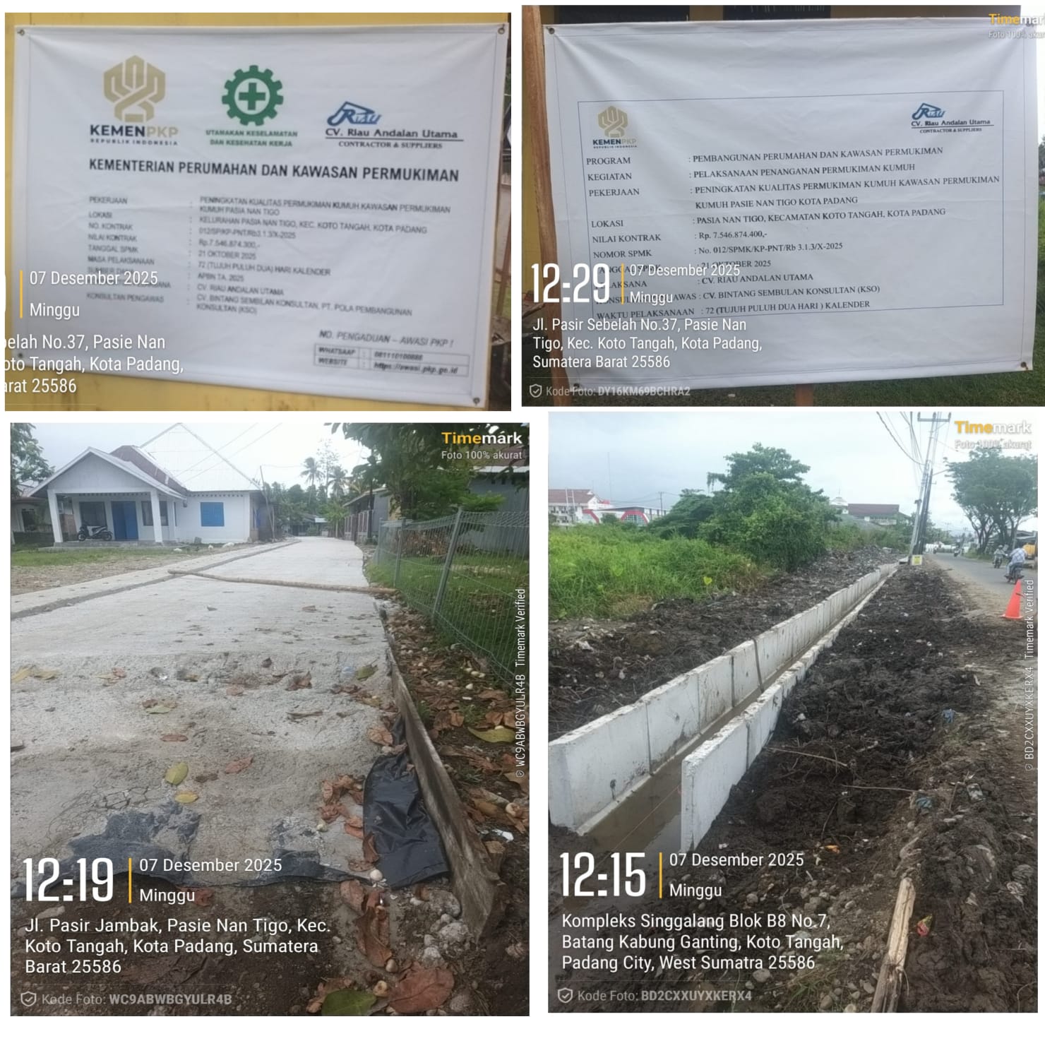 Kota Padang – SekilasBerita86.com, Sumbar | Proyek peningkatan kualitas permukiman kumuh di Kelurahan Pasie Nan Tigo, Kecamatan Koto Tangah, Kota Padang, yang dibiayai negara melalui anggaran Rp 7.546.874.400, kini menuai sorotan setelah investigasi lapangan menemukan berbagai dugaan ketidaksesuaian pekerjaan.