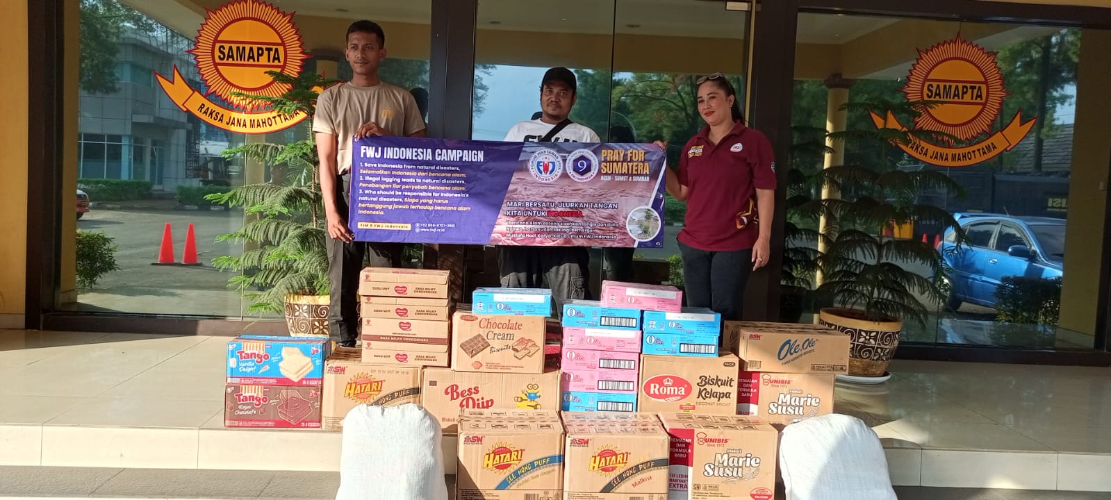 Melalui pengurus DPP FWJI terhimpun donasi/bantuan berupa makanan ringan/snack dan juga susu UHT serta pakaian layak pakai, yang diserahkan melalui Kantor Koshabara Baharkam Polri, di Pasir Gunung Selatan, Kelapa Dua, Cimanggis, Depok, pada hari Sabtu, (13/12/2025).