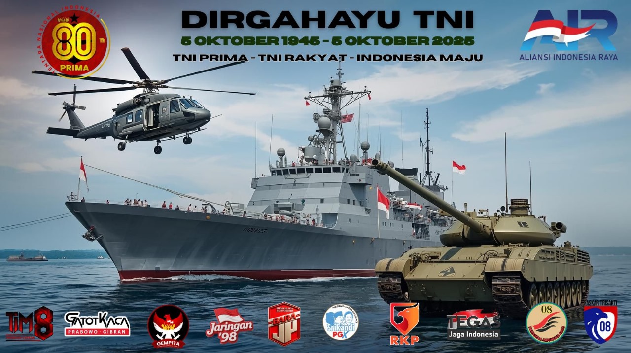 Seluruh komponen bangsa menyampaikan selamat dan penghormatan setinggi-tingginya kepada Tentara Nasional Indonesia (TNI) yang pada hari ini genap berusia 80 tahun. Peringatan ini menjadi momentum untuk meneguhkan kembali semangat juang, pengabdian, dan loyalitas prajurit TNI dalam menjaga kedaulatan Negara Kesatuan Republik Indonesia.